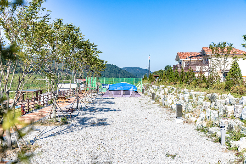 수류산골 야영장은 전북 김제시 금산면에 자리했다. 김제시청을 기점으로 26Km가량 떨어져 있다. 자동차를 타고 풍요로, 선비로, 수류로를 차례로 거치면 닿는다. 도착까지 소요 시간은 약 40분이다. 캠핑장이 모악산 도립공원 인근의 고즈넉한 시골에 위치한 덕분에 기분 좋은 청량감을 만끽할 수 있다. 게다가 산으로 둘러싸인 형상이라 어느 방향으로 고개를 돌려도 풍경이 기막히다. 캠핑장에는 일반야영장 11면을 마련했다. 모두 파쇄석으로 이뤄졌으며, 사이트 크기는 가로 3m 세로 5m다. 개인 카라반과 트레일러의 동반 입장도 가능하다. 사계절 내내 운영하지만, 주말에만 문을 연다. 캠핑장 외에 펜션 4개 객실도 운영 중이다. 게다가 머그잔 만들기, 손수선 꽃물들이기, 매실 쿠키 만들기, 감 따기, 비누 만들기, 초 만들기 등 체험 거리가 차고 넘친다. 예약은 온라인 실시간과 전화로 가능하다.