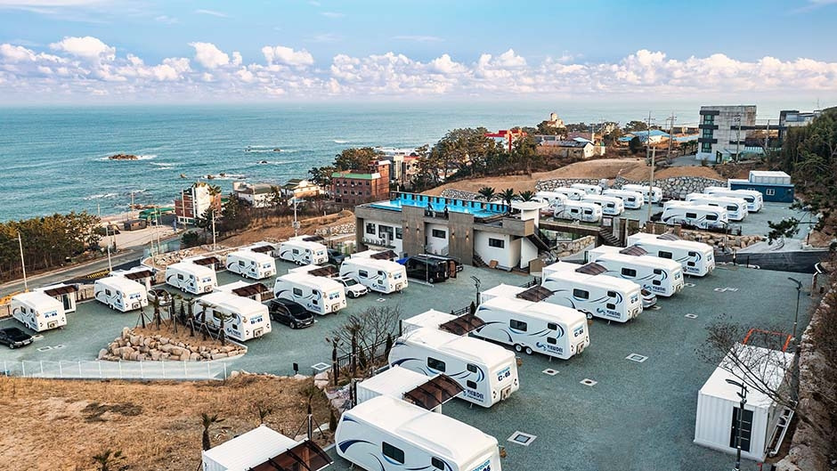 뷰델카라반펜션은 경북 경주시 감포읍 오류리에 자리 잡았다. 경주시청을 기점으로 35㎞가량 떨어졌다. 자동차를 타고 토함산로와 나정오류로를 번갈아 달리면 닿는다. 도착까지 걸리는 시간은 40분 안팎이다. 캠핑장은 오류고아라해변과 인접한 덕분에 아름다운 풍경을 한눈에 담을 수 있다. 외관과 내부 모두 고급스러운 분위기를 풍기는 카라반 29대가 마련돼 있다. 내부에는 침대, TV, 테이블, 개수대, 취사도구, 조리도구, 화장실, 샤워실 등 일상생활이 가능할 정도의 시설이 완비돼 있다. 다목적 루프탑 쉼터, 루프탑 야외 수영장, 카페, 야외 영화관 등 부대시설도 알차다. 주변에는 감포항과 나정고운모래해변이 있어 연계 관광이 용이하다.