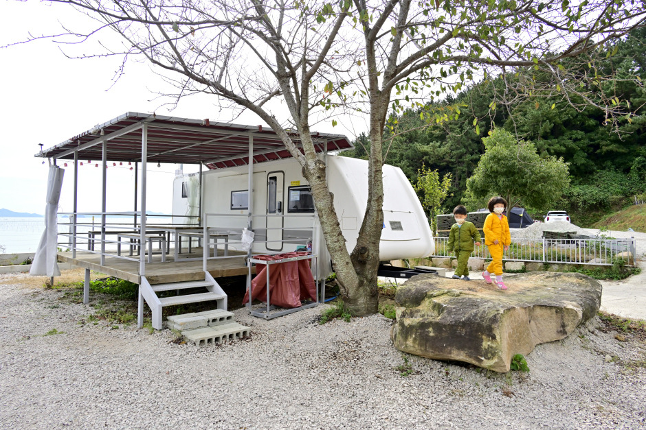 바다를 바라보면서 캠핑을 즐길 수 있는 별빛밤바다 오토캠핑장은 카라반 구역과 텐트 구역으로 나눠져 있다. 화롯가에 둘러앉아 불꽃의 일렁임을 바라보면서 불멍을 할 수 있게 각 자리마다 화로를 준비해 놓았다. 또한 사이트 마다 전기 사용도 가능하다. 캠핑 장비를 일일이 챙기기 부담스러울 때는 카라반을 이용하면 좋은데 침대, TV, 에어컨, 냉장고, 화장실, 주방이 구비되어 있어 간편하면서도 편하게 캠핑을 즐길 수 있다.