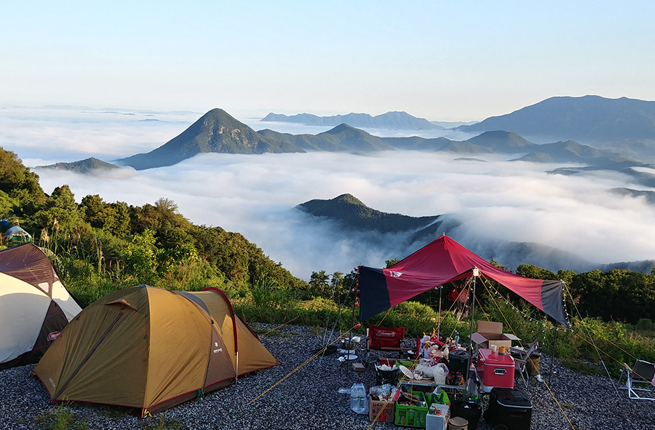 경북 군위 화산 해발 600미터 위에 있는 산속 캠핑장이다. 산정상에 있는 캠핑장으로 일부는 비포장 구간이 있어 날씨 확인 후 이용하는 것이 좋다. 캠핑장에서 보이는 풍경, 저녁 노을과 이름처럼 저녁 바람이 좋은 캠핑장이다.