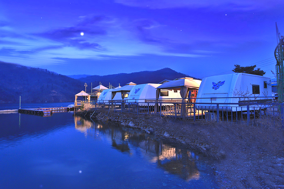 가평군 청평면에 위치한 포세이돈 카라반 캠핑장에는 모두 카라반 19대를 운영 중이다. 서바이벌 그라운드가 보이는 전망이 좋은 곳이면서, 동시에 수상레저를 즐기기 쉽도록 호수 인접한 곳에 위치해 있다. 문을 열면 청평호의 시원한 풍경이 조망된다. 카라반은 파쇄석 위에 전용 나무데크 시설과 잔디밭 위에 위치해 있어 꼭 외국의 어느 캠핑장에 와 있는 듯한 느낌을 준다. 탁자와 의자가 있어 바비큐 그릴을 사용하기 편리하다. 공동 바비큐장도 이용이 가능하다. 카라반 내 화장실과 샤워실 내부의 청소상태 또한 청결하여 이용객의 기분을 좋게 한다. 수상레저 전문업체가 운영하는 만큼 여름철 각종 수상레저 및 액티비티를 체험할 수 있으며 카바나식 그늘막이 설치된 수영장에서는 일몰 시 아름다운 사진을 남길 수 있다.