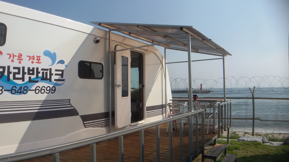 강릉경포카라반파크(씨카라반)은 강원도 강릉시 사천면에 자리하고 있다. 동해고속도로 북강릉IC에서 북강릉, 주문진 방면으로 10분가량 달리면 도착한다. 사천진항과 사천해변 사이에 위치한 덕택에 어느 객실에 머물든 동해를 한눈에 담으며 캐러밴 캠핑을 만끽할 수 있다. 시간의 흐름에 따라 변화하는 바다의 풍광이 캠핑의 즐거움을 더해준다. 이곳은 16대 캐러밴이 마련돼 있으며, 내부에는 침대, 냉난방기, 개수대, 냉장고, 전자레인지, TV, 취사도구, 식기류, 화장실, 샤워실 등을 갖췄다. 외부엔 철제 어닝 아래로 목재 데크, 테이블, 의자를 설치해, 바다를 배경으로 바비큐를 즐길 수 있다. 매점을 운영하고 있지 않지만, 캠핑장 주변이 번화한 곳이라 슈퍼를 찾기 쉽다. 관리소에서는 바비큐 그릴을 대여해준다.