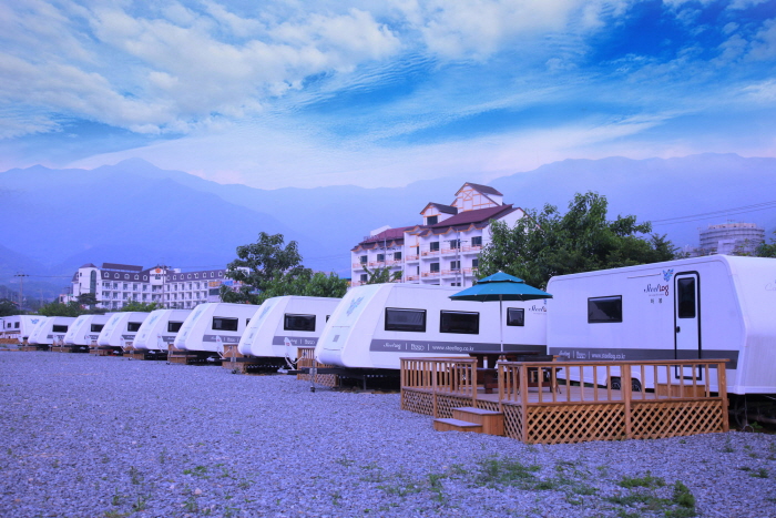 - 내용 : 카라반내 주방시설 및 샤워시설 가능, 카라반 존 앞 온천랜드 이용가능