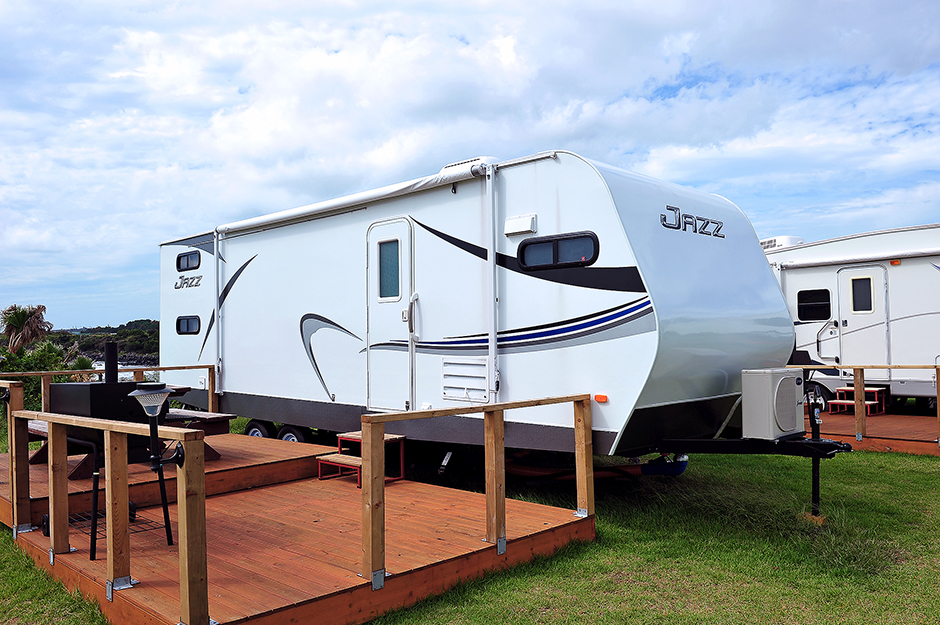서건도 카라반은 모세의 기적이 일어나는 곳, 올레 7코스와 범섬이 있는 아름다운 서귀포시 강정마을에 위치하고 있다. 넓은 부지의 잔디밭과 그 위로 서건도, 샌타로사, 샌타에나, 샌디에이고, 샌타바버라의 이름을 가진 카라반이 바다를 친구삼아 당당하게 자리하고 있다. 카라반의 내부에는 더블베드, 2층 침대, 쇼파 베드, 주방, 취사도구 일체, 전자레인지, 에어컨, 냉장고, 식탁, 욕실, TV 등을 갖추고 있으며, 카라반 옆으로 개별 테라스가 있어 여유롭게 바다를 감상하며 식사와 바비큐 파티를 즐길 수 있다. 겨울철 노지 캠핑이 부담스럽다면 한 번쯤은 이색적인 경험을 할 수 있는 카라반캠핑도 좋을 듯하다. 서건도 카라반 캠핑장은 주변에 귤밭과 드넓은 잔디밭이 있어 어린이들이 뛰어놀기에 좋으며, 이동식 미니수영장이 있어 여름철 물놀이 장소로도 좋다.